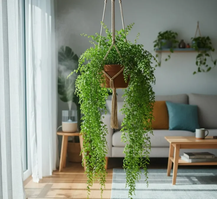 A samambaia se adapta muito bem ao apartamento, desde que receba boa iluminação indireta e ambiente ventilado. Coloque perto de janelas com cortina leve e evite ar-condicionado direto. Com umidade adequada, ela cresce bonita e ajuda a deixar o ambiente mais agradável.
